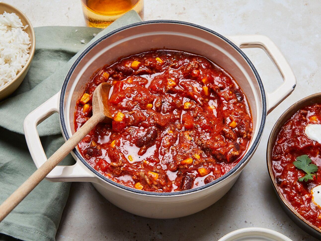 Taste and adjust seasonings as needed. If the chili is too thick, add a little more broth. If too thin, simmer uncovered for a few more minutes.