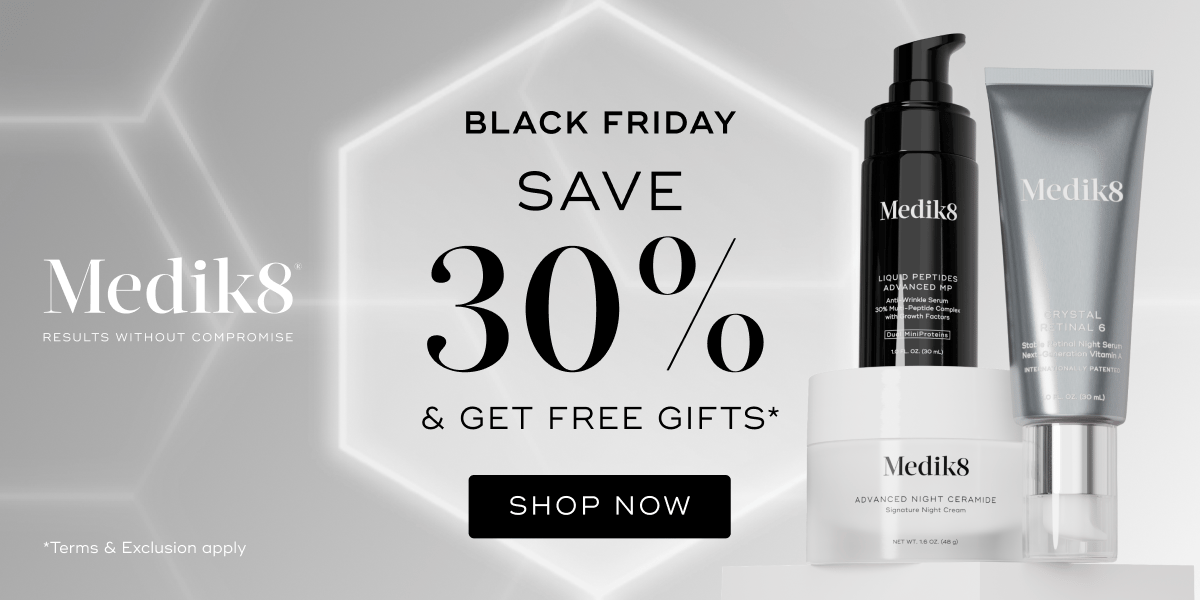 Black Friday is here, but these skin care deals won’t last long! Rediscover your skin's youthful glow with Medik8, the British clinical skincare brand, delivering results without compromise. There is no better time to shop Medik8’s best-selling, results driven skincare at 30% off!*