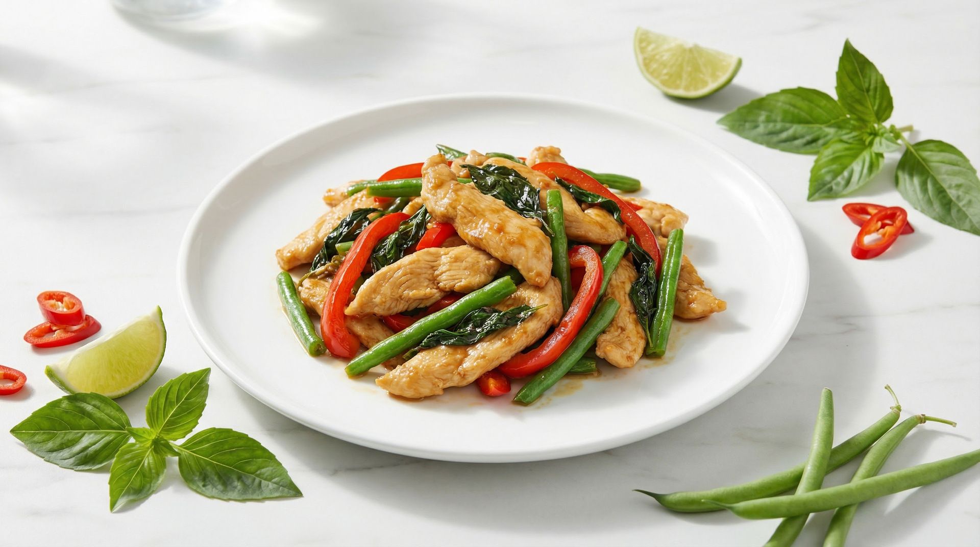 This Thai basil chicken stir fry delivers lean protein and vibrant vegetables in under 20 minutes. It supports steady energy and keeps you full without the heavy carbs or excess sodium of takeaway.