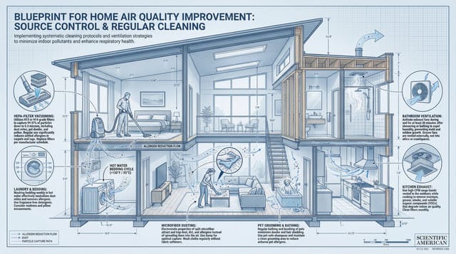 Vacuum twice a week with a HEPA filter vacuum. Dust with microfiber cloths, not cotton rags. They trap particles instead of pushing them into the air. Wash bedding in hot water every two weeks to kill dust mites.